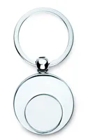 Fém, kerek kulcstartó, mindkét oldalon fényes felületű fém betéttel. Fekete díszdobozban szállítjuk.