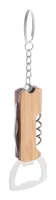 Bambusz és rozsdamentes acél üvegnyitós kulcstartó dugóhúzóval és zsebkéssel.