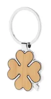 Fém négylevelű lóhere alakú fém kulcstartó bambusz betéttel. Kraft papír dobozban.