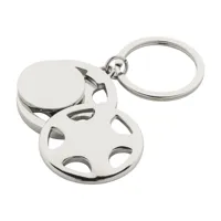 Autókerék alakú, fém kulcstartó, bevásárlókocsi érmével, fekete díszdobozban szállítjuk.