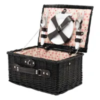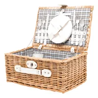 4 személyes fonott piknikkosár. 4 rozsdamentes acél kanalat, villát és kést, 4 kerámiatányért, pincé...