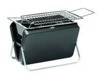 Rozsdamentes acélból készült hordozható, táska formába összecsukható minigrill grillráccsal, az aljá...