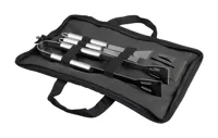 3 részes rozsdamentes acél grillszett (villa, lapát és grill fogó) cipzáras, nylon tokban.