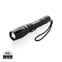 Alumínium zseblámpa beépített USB újratölthető akkumulátorral (1500 mAh) és hordszíjjal. Zoomolható,...