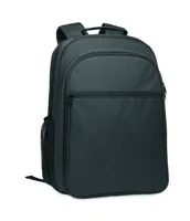 300D RPET hűtőtáskás hátizsák 15 colos laptop rekesszel. Elülső cipzáras zseb és egy oldalsó hálós r...