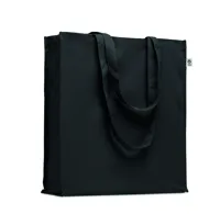 RPET filc bevásárlótáska betoldással és hosszú fülekkel. Megkülönböztető RPET címkével.