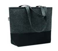 RPET filc bevásárlótáska betoldással, gombos záródással és rövid fülekkel. Megkülönböztető RPET címk...