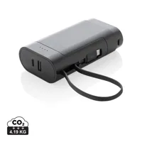 Kompakt, lapos 5000 mAh powerbank ABS anyagból. A 3 az 1-ben beépített TPE kábel segítségével a term...
