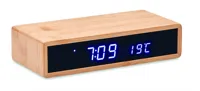 Vezeték nélküli töltő kék LED kijelzővel, ébresztőóra és hőmérő funkcióval, bambusz burkolattal. Vil...