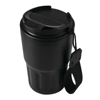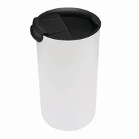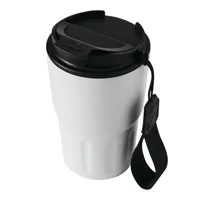 Rozsdamentes acélból készült dupla falú thermo bögre műanyag füllel és ivónyílással a tetején, 330 m...