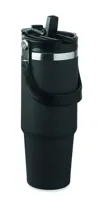 Duplafalú, újrahasznosított PP műanyag szigetelt thermo bögre műanyag ivófedéllel és szívószállal, 9...