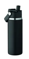 Duplafalú rozsdamentes acél termoszpalack, kampós akasztóval a fedélen. Űrtartalom: 500 ml.