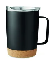 Duplafalú, rozsdamentes acél pohár parafa alappal és csúsztatható ivórésszel ellátott fedéllel. Űrta...