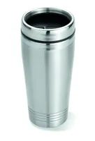 Duplafalú rozsdamentes acél úti bögre fekete PP tetővel. Űrtartalom: 400 ml.