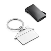 Fém, ház alakú kulcstartó. Kraftpapír díszdobozban szállítjuk. 49 x 36 x 3 mm