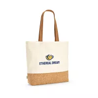 Ez a táska újrahasznosított pamutot (70% újrahasznosított pamut és 30% rPET) tartalmaz, amelyet tartós parafa aljjal rögzítettek. Strapabíró, 220 g/m2-es konstrukcióval és kényelmes, 65 cm-es fogantyúval. Mérete 46 x 38 x 10 cm, így egyszerre kínál helyet és stílust.
