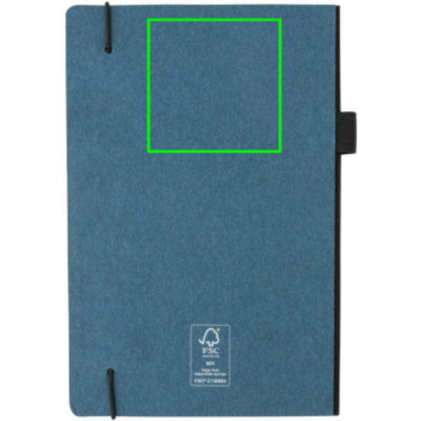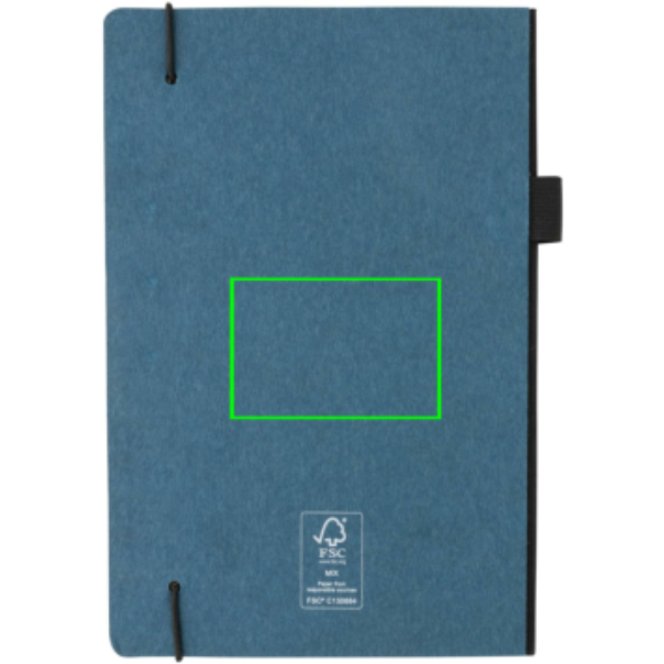 FSC® deluxe keményfedelű jegyzetfüzet FSC® tanúsítvánnyal rendelkező papírborítással, színben megegyező fekete, gumis tollhurokkal és könyvjelző szalaggal. Hátsó zsebbel jegyzetek tárolásához. 80 lap/160 oldal krémszínű, FSC®-tanúsított, vonalas papír.