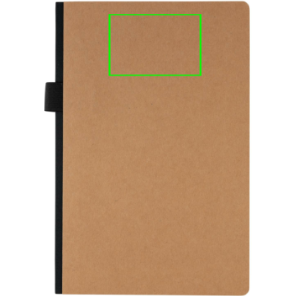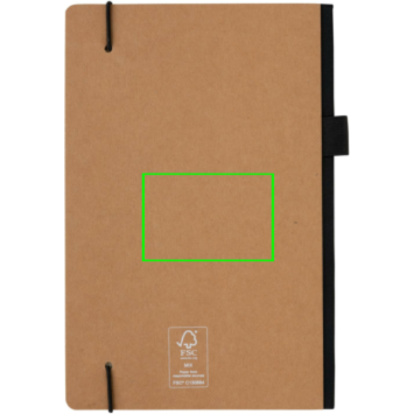 FSC® deluxe keményfedelű jegyzetfüzet FSC® tanúsítvánnyal rendelkező papírborítással, színben megegyező fekete, gumis tollhurokkal és könyvjelző szalaggal. Hátsó zsebbel jegyzetek tárolásához. 80 lap/160 oldal krémszínű, FSC®-tanúsított, vonalas papír.