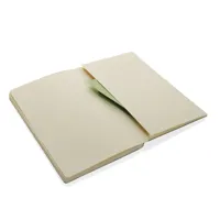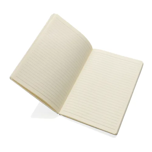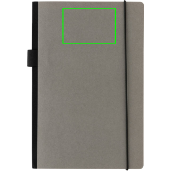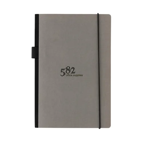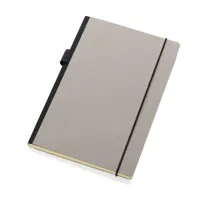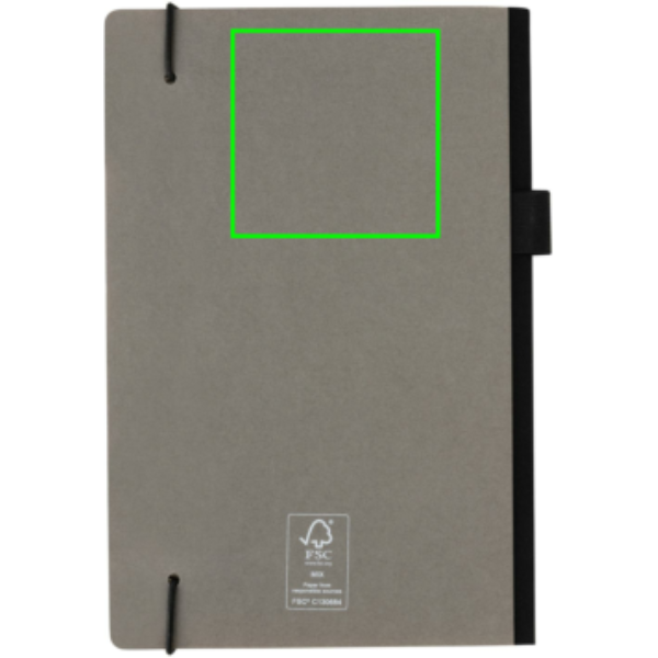 FSC® deluxe keményfedelű jegyzetfüzet FSC® tanúsítvánnyal rendelkező papírborítással, színben megegyező fekete, gumis tollhurokkal és könyvjelző szalaggal. Hátsó zsebbel jegyzetek tárolásához. 80 lap/160 oldal krémszínű, FSC®-tanúsított, vonalas papír.