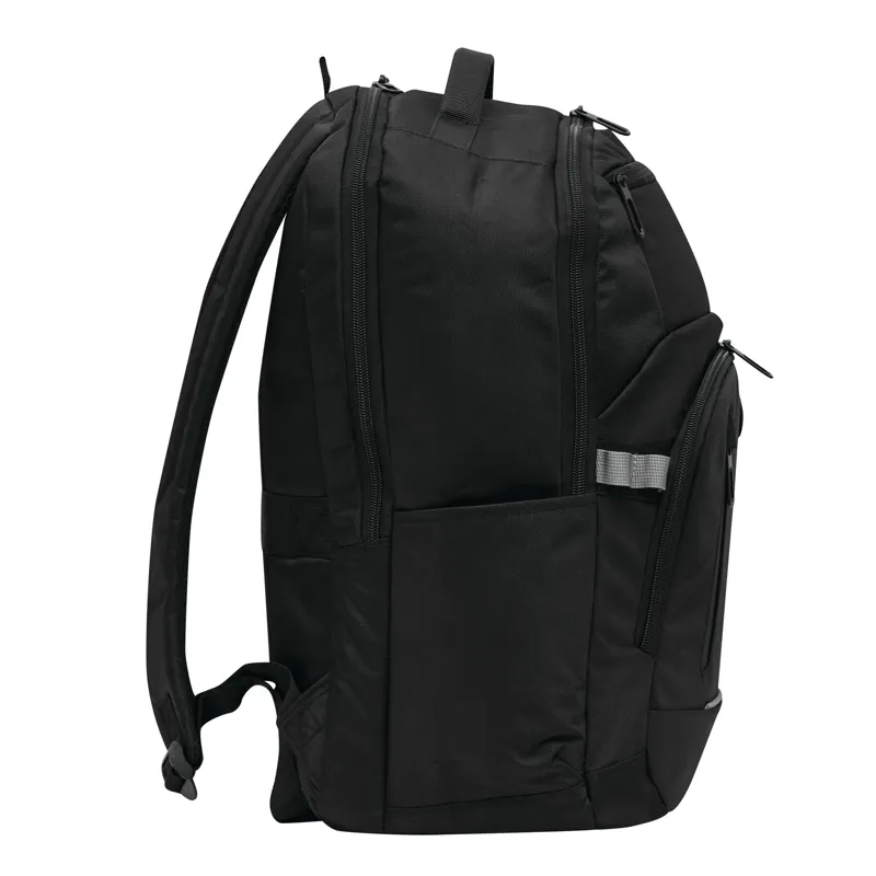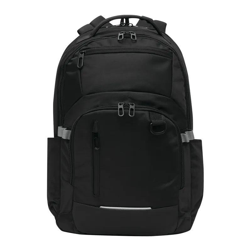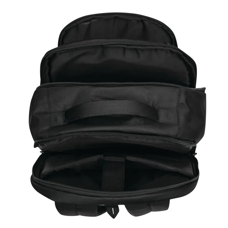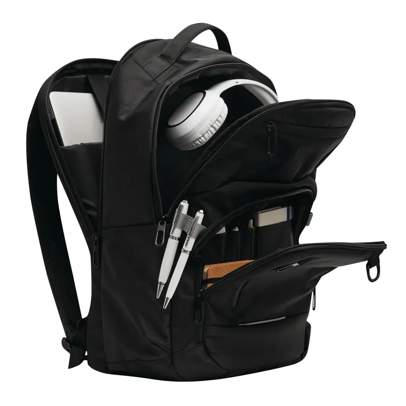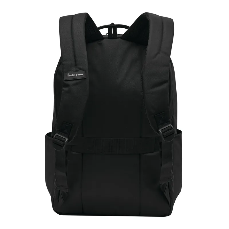 AARHUS hátizsák: 1 cipzáras első rekesz rendszerezővel, 1 függőleges cipzáras elülső zseb, 1 vízszintes cipzáras elülső zseb puha béléssel (ideális okostelefonhoz stb.), fényvisszaverő csík, 2 becsúsztatható zseb oldalt, 2 cipzáras fő rekesz, az egyik párnázott rekesszel laptop vagy tablet számára és egy további becsúsztatható zseb, párnázott fül és kis akasztó, D-gyűrűvel és tolltartókkal, ergonomikusan kialakított párnázott vállpántokkal és párnázott hátrésszel - Nordic plains márkájú termék