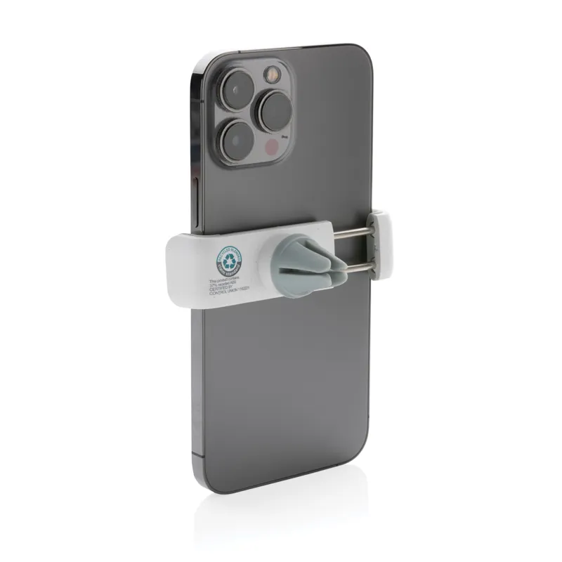 Univerzális és 360 fokban forgatható telefontartó RCS (Recycled Claim Standard) újrahasznosított ABS-ből. Teljes újrahasznosított anyag tartalom: 37% a termék összsúlya alapján. Az RCS-tanúsítvány biztosítja az újrahasznosított anyagok ellátási láncát. Egyszerűen kattintson a szellőzőnyíláson lévő eszközre és helyezze mobiltelefonját (legfeljebb 6.2 hüvelyk) a tartóba. Hőálló, újrahasznosított ABS-ből és erős szilikonból készült, hogy az eszköz tartós legyen és stabilan tartson vezetés közben is. Belül rozsdamentes acél mechanizmussal, hogy a telefon a helyén maradjon.