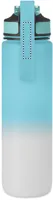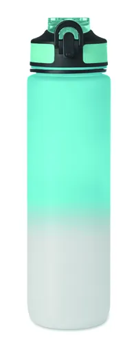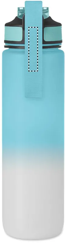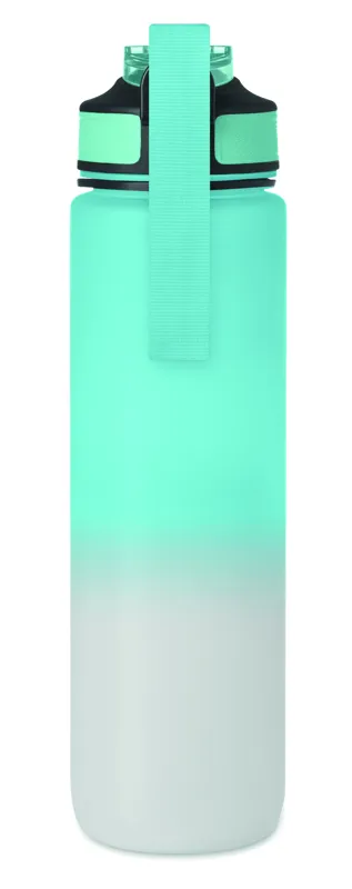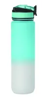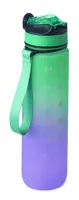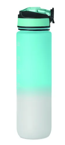 Sportkulacs RPET-ből, beépített szívószállal, puha szilikon ivórésszel, motivációs időjelzéssel, egy kézzel nyitható, felpattintható fedéllel, biztonsági zárral és hordszíjjal. Szivárgásmentes. Űrtartalom: 1 liter.