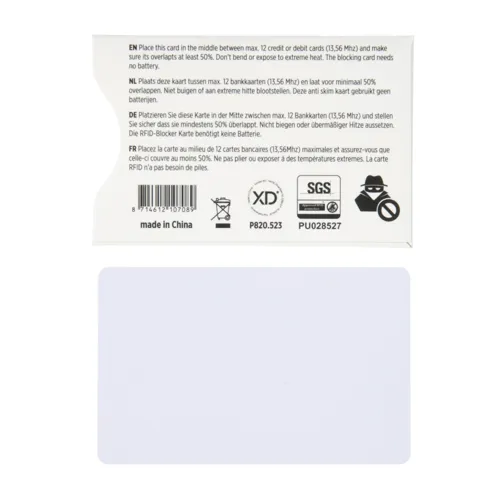 Varázsoljon minden pénztárcát, táskát vagy kártyatartót biztonságossá elektronikus adatlopás ellen. Ez a kártya az NFC/RFID olvasók által generált energiát felhasználva elektromos teret képez ezáltal minden 13.56 Mhz-es kártyát láthatatlanná téve a leolvasó előtt. Nincs szükség akkumulátorra. Éjjel-nappali védelem szabadalmazott e-mezős technológiával.