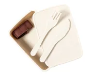 PP műanyag uzsonnás doboz evőeszköz készlettel (kés és villa), rugalmas pánttal, 700 ml.
