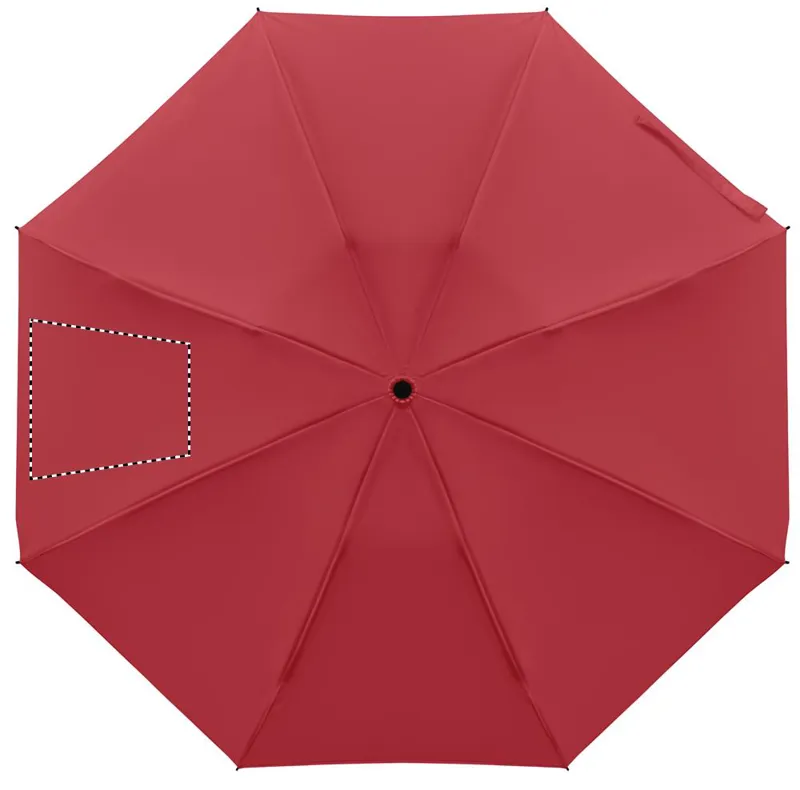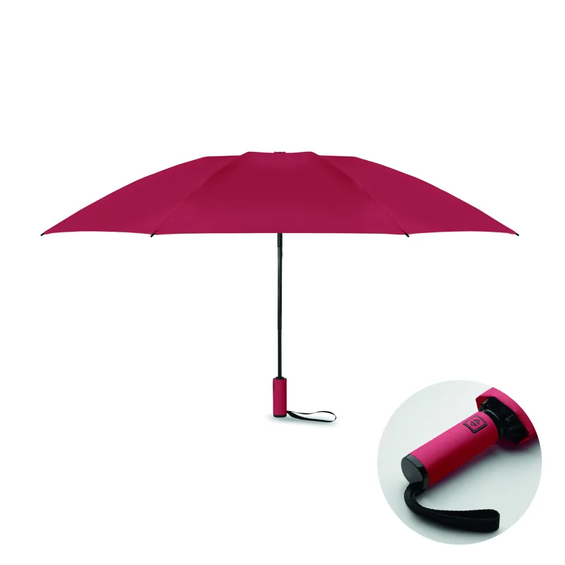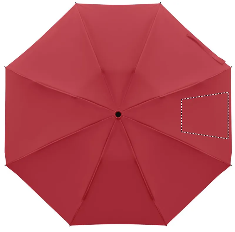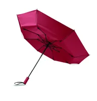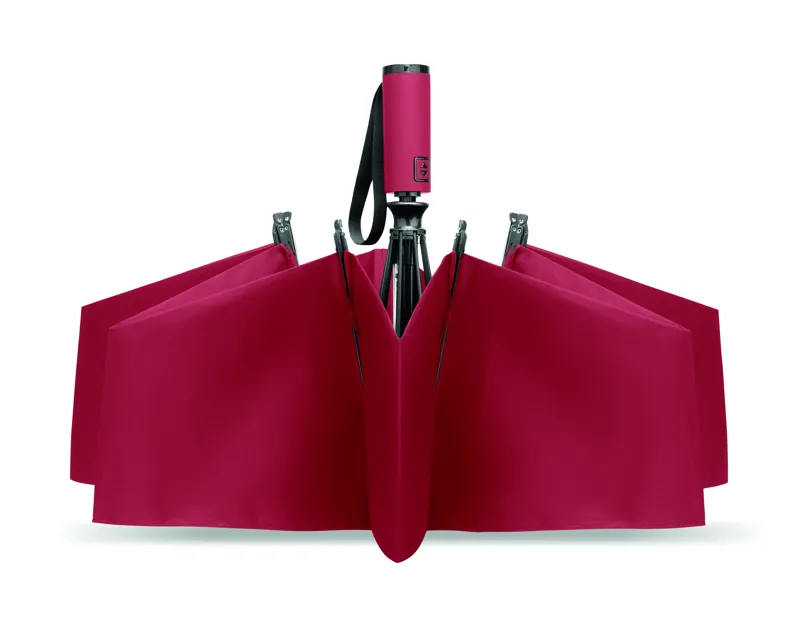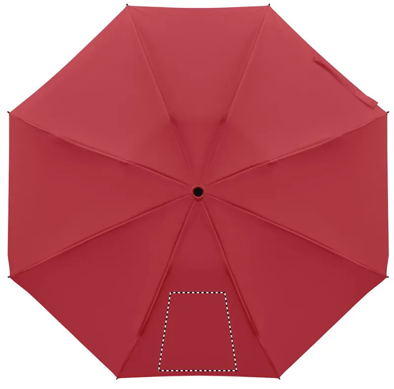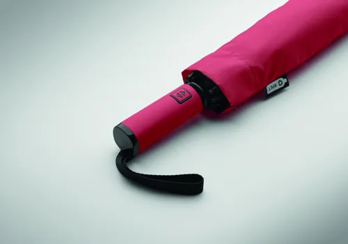 23 colos, 3 szakaszos összecsukható, fordított szélálló esernyő 190T RPET pongee-ból, hozzáillő tokban. Automatikus nyitás és zárás, fekete bevonatos rúd, üvegszálas bordák, gumírozott ABS markolat.
