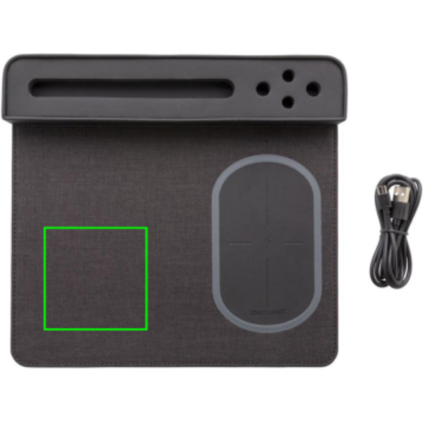 Töltse fel okostelefonját kábellel vagy bármilyen QI készülékét vezeték nélkül miközben dolgozik számítógépén. Lapos, négyszög formájú egérpad csúszásgátló hátlappal valamint tartóval telefon illetve 4 toll számára. Az 1,5 méter hosszú kábel tartozéka a terméknek. Bemenet: 5V/1A, Kimenet: 5V/1A, Vezeték nélküli kimenet: 5V/1A 5W.