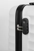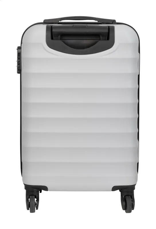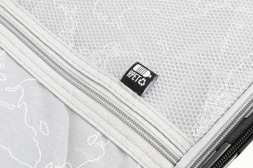20 hüvelykes, kemény borítású kézi poggyásztáska RPET anyagból, 4 kerékkel, teleszkópos fogantyúval és kombinált zárral. RPET belső béléssel és rugalmas rögzítő pántokkal. Fém lemezzel logó gravírozáshoz.