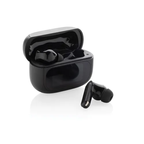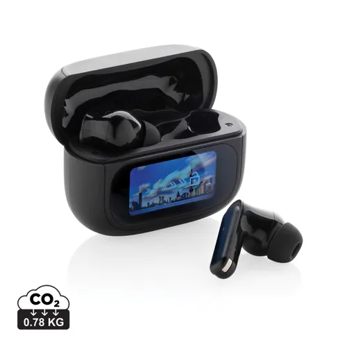 Hallgasson zenét külső zajoktól mentesen. Az ANC funkció gondoskodik a külső zajok csökkentéséről az optimális koncentráció érdekében. A töltőtok integrált TFT érintőképernyővel rendelkezik, amely számos egyedi funkciót kínál: megtalálhatja a fülhallgatót, beállíthatja a hangerőt, kiválaszthatja a következő dalt, hívásokat fogadhat, megváltoztathatja a nyelvet (8 nyelv közül választhat) és még sok más funkciót. A fülhallgató és a töltőtok RCS (Recycled Claim Standard) újrahasznosított ABS-ből készült. Teljes újrahasznosított anyagtartalom: 43% a termék összsúlya alapján. Az RCS-tanúsítvány biztosítja az újrahasznosított anyagok ellátási láncát. 5.3-as vezeték nélküli kapcsolattal az automatikus, problémamentes párosítás és a stabil kapcsolat érdekében. 30 mAh-s akkumulátorral, amely akár 6 óra játékidőt is lehetővé tesz (ANC-vel), és a töltőtokban 1,5 óra alatt újratölthető. ANC fokozat: 23 DB. 3 méretű füldugóval. IPX4 vízálló. ENC mikrofonnal a tiszta hívásokért. FSC kraft dobozban.
