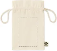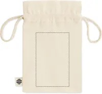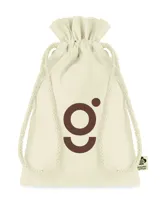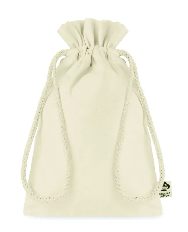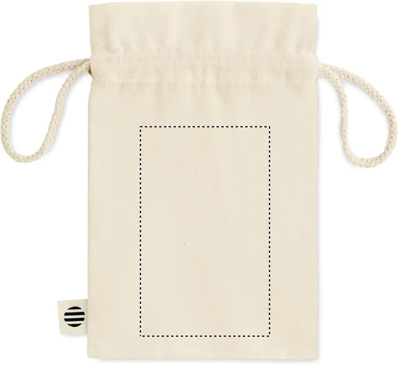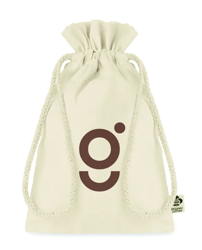 Kis húzózsinóros ajándéktasak biopamutból. Méret kb. 14x22 cm. 105 g vastag anyag.