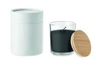 Vanília illatú, növényi alapú viaszgyertya üvegben, bambuszfedéllel, hengeres papír ajándékdobozban. 7 cm átmérőjű. Égési idő: 20 óra. 120 g. A bambusz természetes anyag, színében, mintázatában és méretében esetenként eltérő lehet.