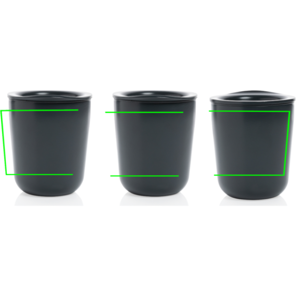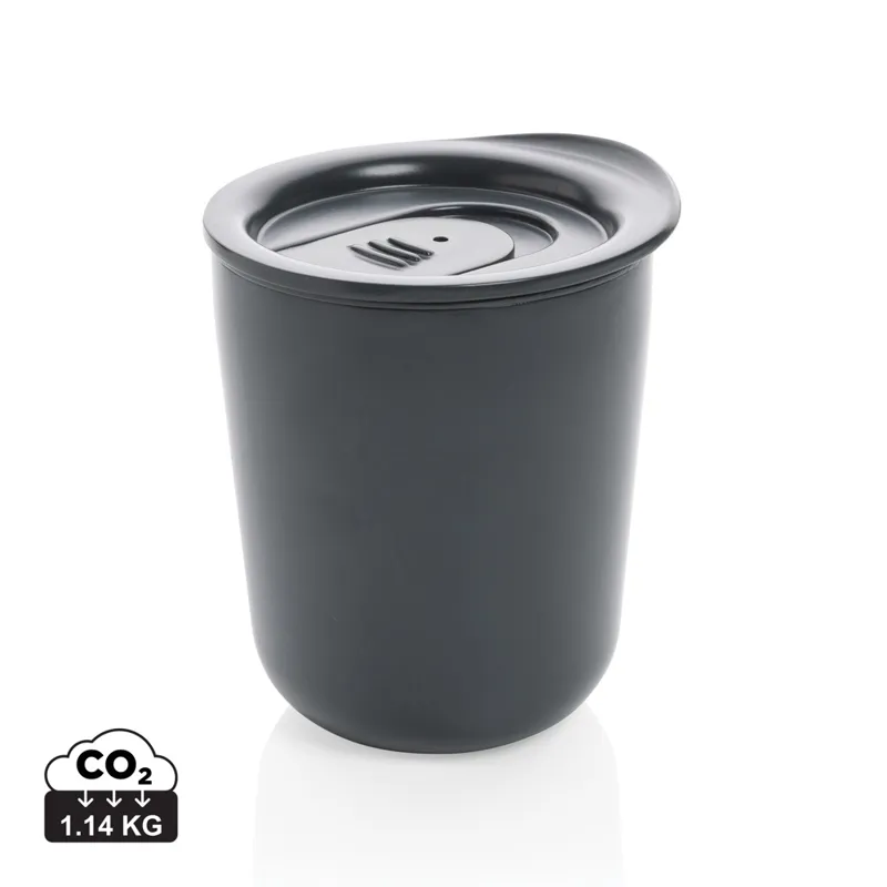 Antimikrobiális kávésbögre ún. Biomaster védelemmel, ami egy antimikrobiális hatóanyag a káros baktériumok ellen. Nem a terméken hanem magában a termékben található ezáltal folyamatos védelmet biztosít. A termék antimikrobiális hatékonysága az ISO 22196 szerint tesztelt és 100%-ig biztonságos. A Biomaster nem befolyásolja a termék újrahasznosíthatóságát. A termék valóban antimikrobiális tulajdonságát a beépített ún. Verimaster nyomkövető bizonyítja, ezáltal lekövethetően és bizonyítottan alátámasztva ennek valódiságát! Teteje zárható, belseje PP, külseje rozsdamentes acél anyagból. Űrtartalma: 250 ml. BPA-mentes.