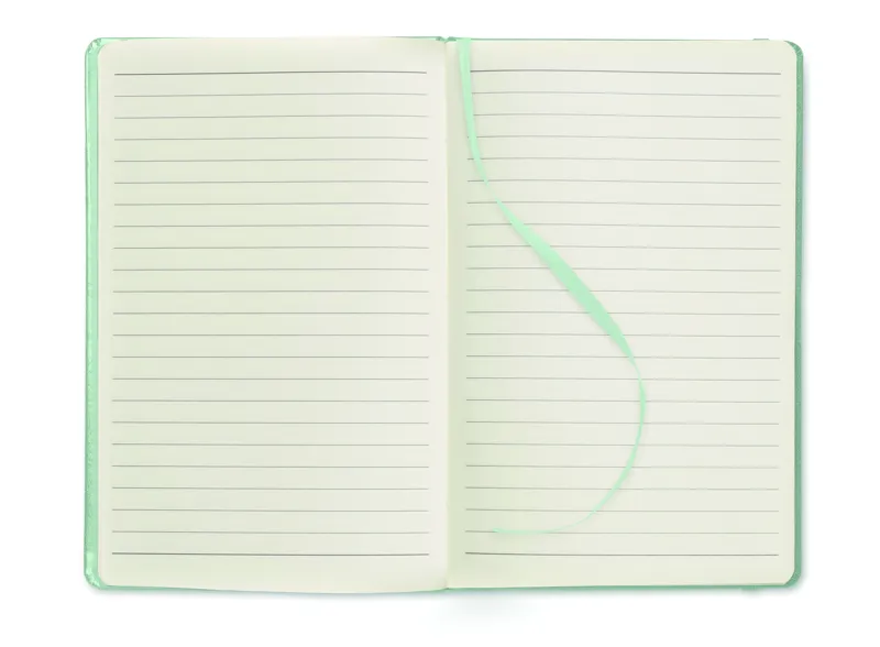 A5 jegyzetfüzet PU keménytáblás borítóval. Cérnafűzött. 192 vonalas oldal (96 lap) újrahasznosított papírból. Színben illeszkedő elasztikus zárópánt és könyvjelző szalag. FSC®-certified | FSC MIX CREDIT, P7.1, FSC-C213206