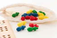 Bambusz ludo játék húzózsinóros pamut tasakban.