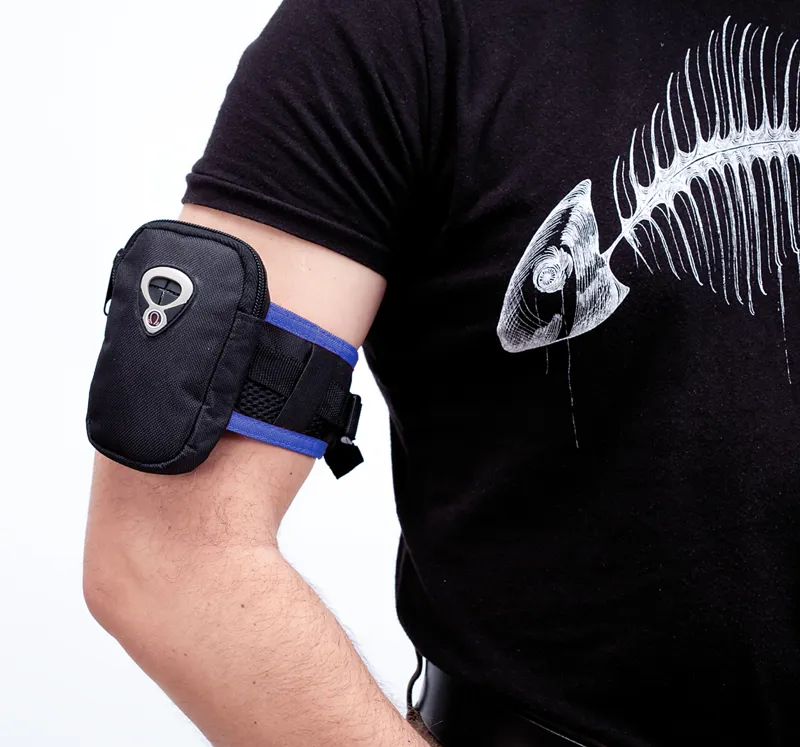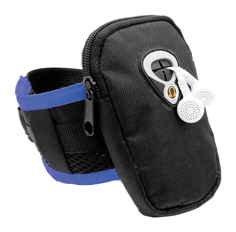 600D poliészter anyagú karpánt, MP3 lejátszó vagy mobiltelefon tokkal.