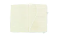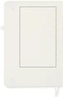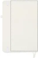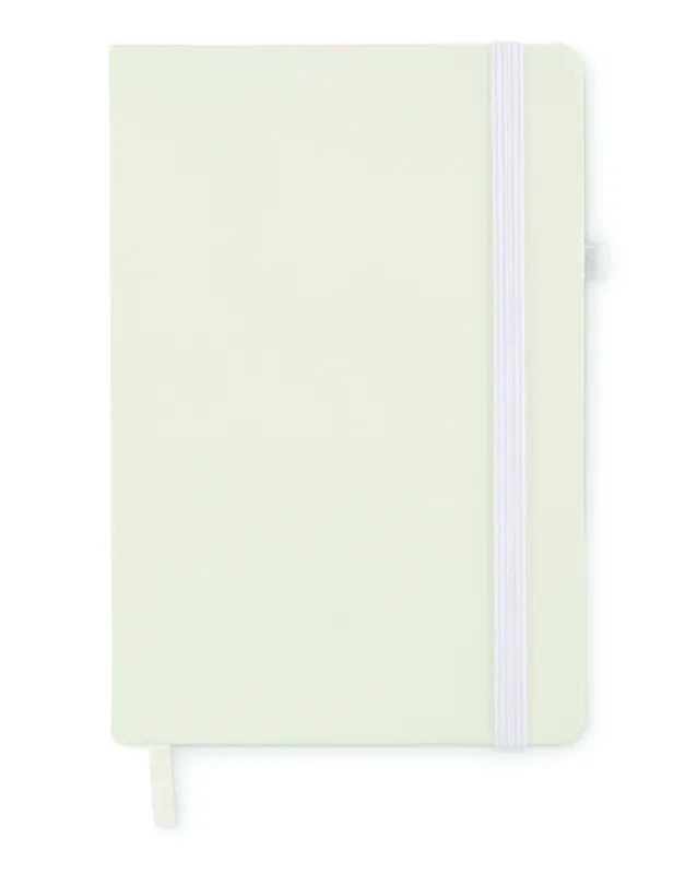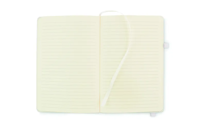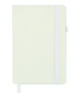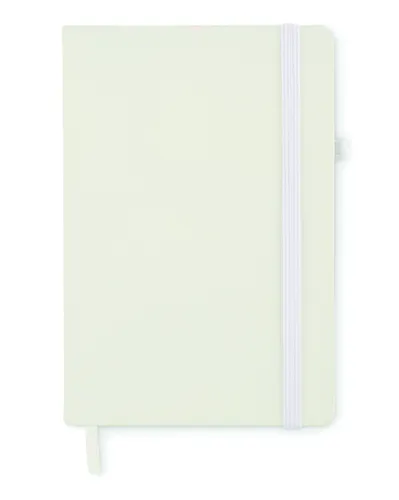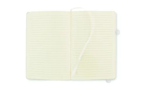 A5 jegyzetfüzet, 70%-ban fogyasztás előtti újrahasznosított bőrből és 30%-ban latexből készült PU borítóval. Cérnafűzött. 192 vonalas oldal újrahasznosított papírból (96 lap). Színben illeszkedő elasztikus zárópánt, tolltartó hurok és könyvjelző szalag.