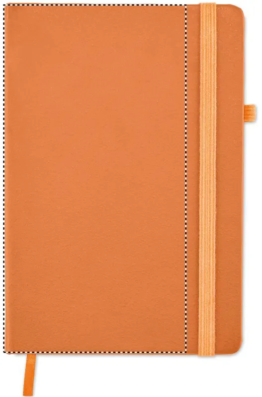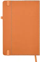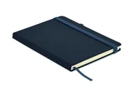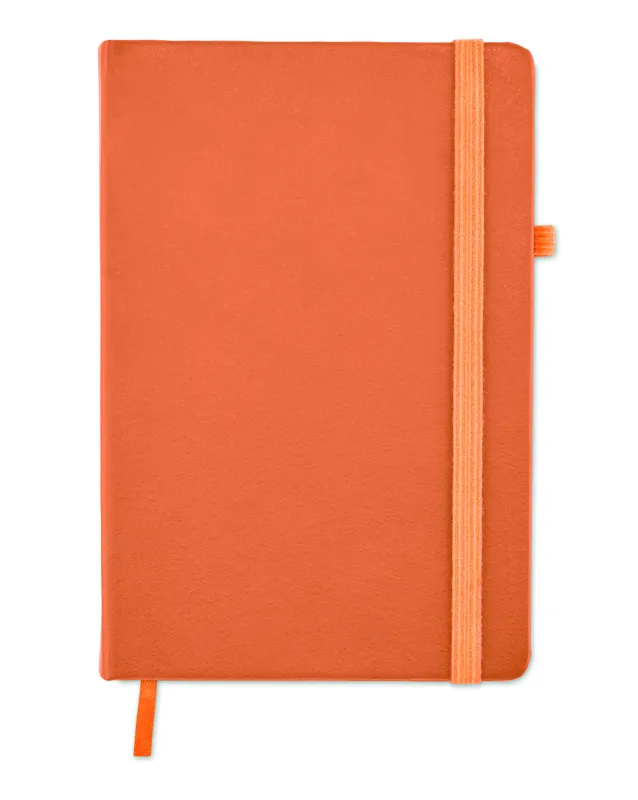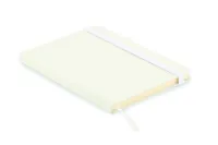 A5 jegyzetfüzet, 70%-ban fogyasztás előtti újrahasznosított bőrből és 30%-ban latexből készült PU borítóval. Cérnafűzött. 192 vonalas oldal újrahasznosított papírból (96 lap). Színben illeszkedő elasztikus zárópánt, tolltartó hurok és könyvjelző szalag.