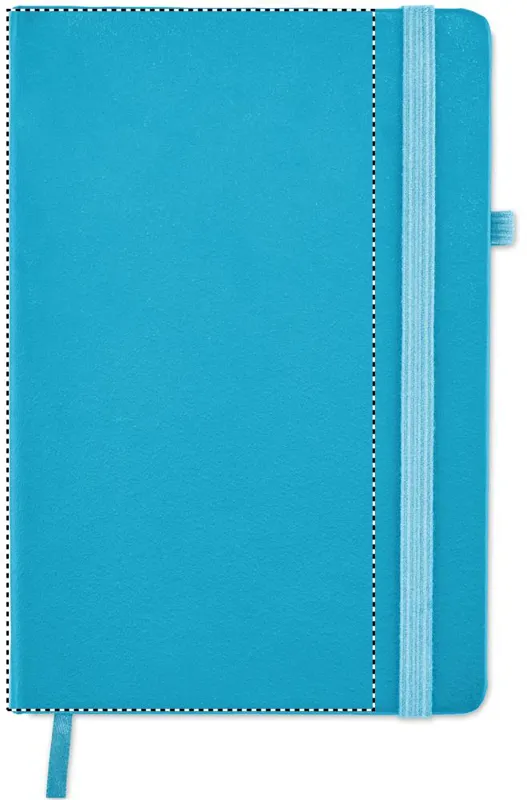A5 jegyzetfüzet, 70%-ban fogyasztás előtti újrahasznosított bőrből és 30%-ban latexből készült PU borítóval. Cérnafűzött. 192 vonalas oldal újrahasznosított papírból (96 lap). Színben illeszkedő elasztikus zárópánt, tolltartó hurok és könyvjelző szalag.