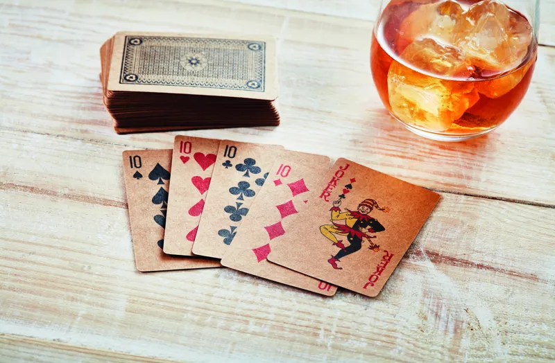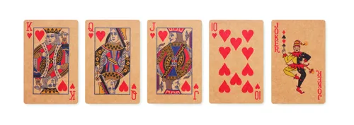 Újrahasznosított papírból készült franciakártya. 54 kártyalap.