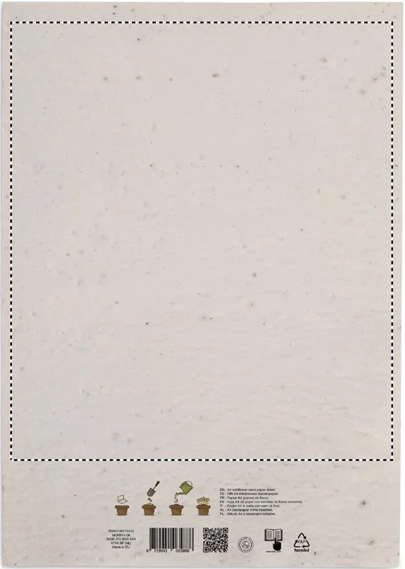 Vadvirág magokat tartalmazó újrahasznosított papírlap A4-es méretben (80 gr/m²). EU-ban gyártva.