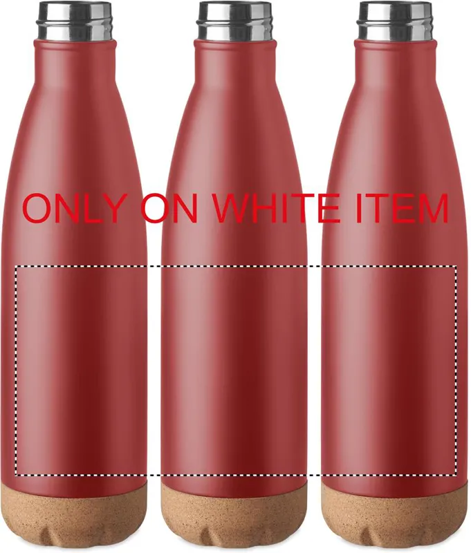 Duplafalú rozsdamentes acél termoszpalack parafa aljjal. Űrtartalom: 500 ml. Szivárgásmentes.A parafa 100%-ban természetes anyag. Szerkezeti jellege és felületi porozitása miatt az egyes tárgyak végső emblémázási eredménye eltéréseket mutathat.