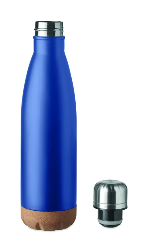 Duplafalú rozsdamentes acél termoszpalack parafa aljjal. Űrtartalom: 500 ml. Szivárgásmentes.A parafa 100%-ban természetes anyag. Szerkezeti jellege és felületi porozitása miatt az egyes tárgyak végső emblémázási eredménye eltéréseket mutathat.