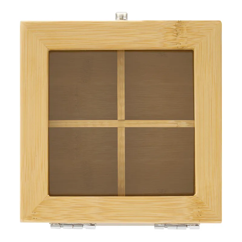 ASSORTMENT teakínáló, tároló doboz: 4 különálló rekesszel, üvegfedéllel és csatos zárral, bambuszból