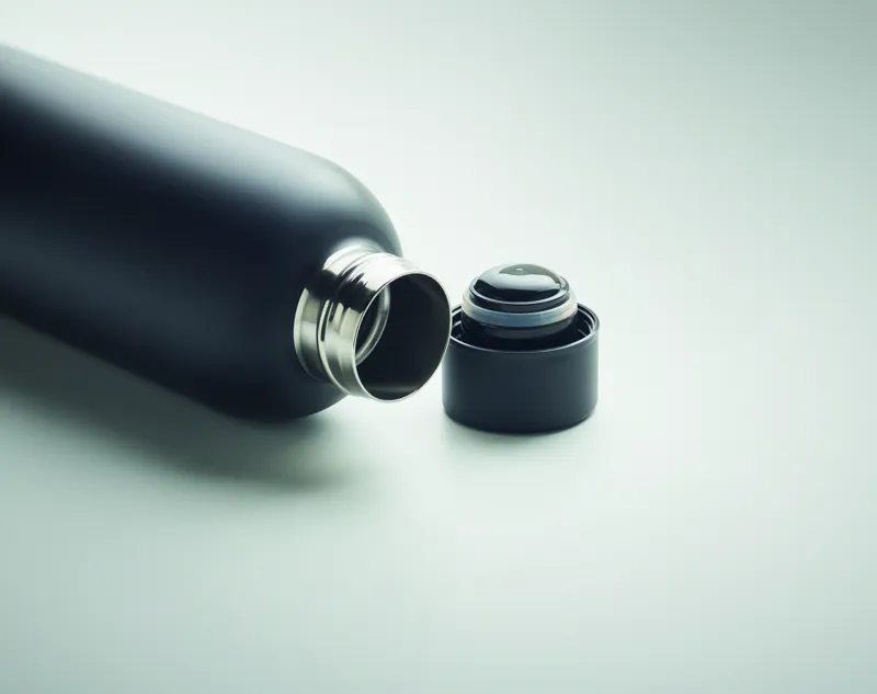 Duplafalú termoszpalack újrahasznosított rozsdamentes acélból (90% újrahasznosított rozsdamentes acél, 10% rozsdamentes acél). Szivárgásmentes. Űrtartalom: 500 ml.