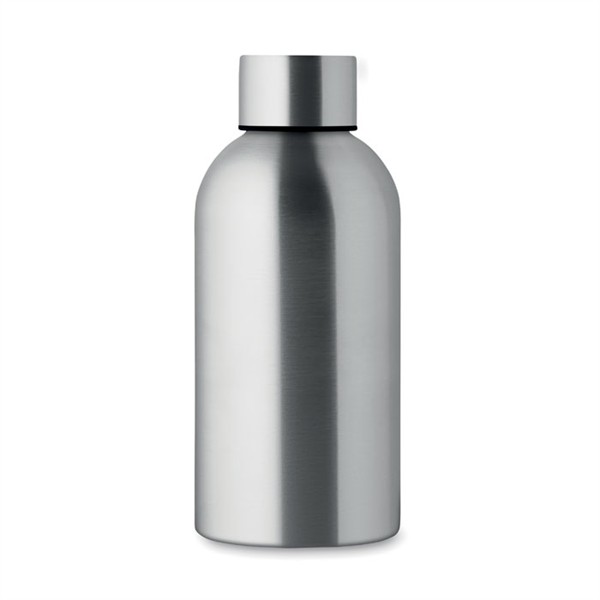 Szimplafalú palack újrahasznosított rozsdamentes acélból (90% újrahasznosított rozsdamentes acél és 10% rozsdamentes acél). Szivárgásmentes. Űrtartalom: 500 ml. Mivel ez egy szimplafalú bögre, hőátadás lehetséges.