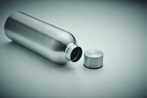 Szimplafalú palack újrahasznosított rozsdamentes acélból (90% újrahasznosított rozsdamentes acél és 10% rozsdamentes acél). Szivárgásmentes. Űrtartalom: 750 ml. Mivel ez egy szimplafalú bögre, hőátadás lehetséges.