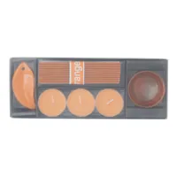 ATMOSPHERE gyertya szett, tartalmaz 3 db illatgyertyát, üveg teamécses-tartót és illatos füstölőket levél alakú kerámia tartóval, áttetsző fedelű ajándékdobozba csomagolva